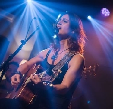 Marta Méndez combina su voz cálida con letras que tocan el alma, creando momentos íntimos y llenos de emoción.